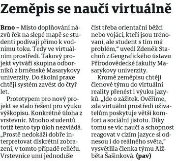 Instead of filling in the names of rivers on a blind map, students will look directly at the watercourse. That is, in a virtual environment. Such a project is being created by a group of experts from Masaryk University in Brno. They want to introduce the system into school practice within four years.